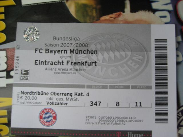Am 03.11.2007 fuhr ein Delegation von rund 50 Mann in die Allianz Arena, um den großen FCB gegen Eintracht Frankfurt siegen zu sehen. Daraus wurde leider nichts, da man in den ersten Minuten verabsäumte, den ängstlich agierenden Franken ein Tor zu machen. Mit Fortdauer des Spiels konnten sich die Frankfurter befreien und kamen letztendlich zu einen verdienten Punkt!