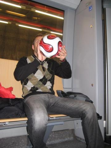 Vor dem Spiel fuhren wir noch an die Säbener Straße (Bayern-Trainingsgelände) und beobachteten Stars wie Sagnol, Kroos oder Ismael beim Spezialtraining. Als Erinnerungsstück konnten wir einen Ball mitnehmen. An dieser Stelle wollen wir uns nochmals bei Willy Sagnol (er schoß den Ball neben das Tor und dadurch rollte der Ball in unsere Richtung) für die edle Spende bedanken.
